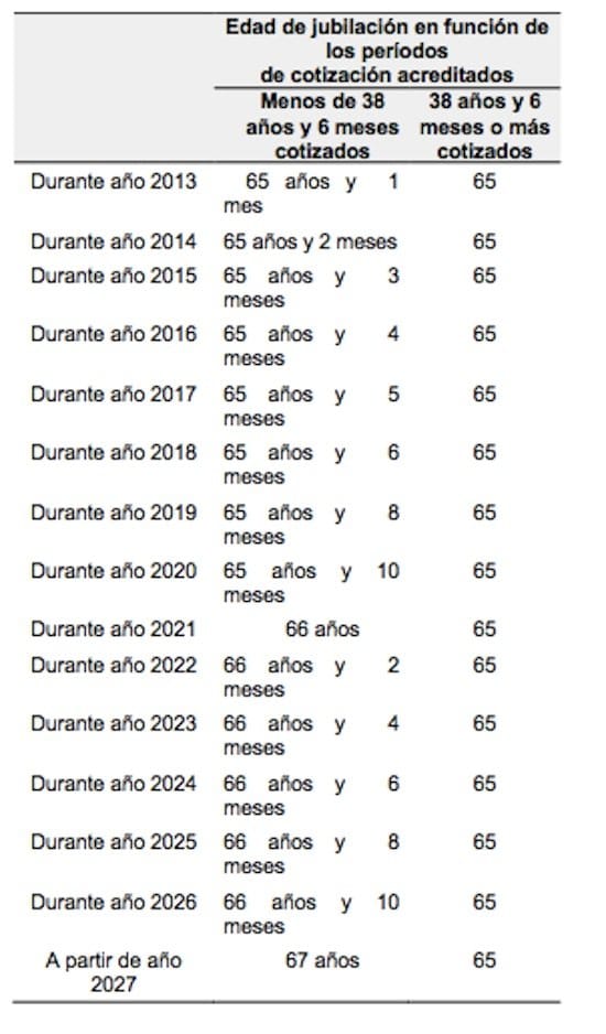 Sin embargo, tal y como ocurre con la edad de jubilación el cambio desde los 35 hasta los 37 años no será automático, si no que se implementará gradualmente según el siguiente calendario.