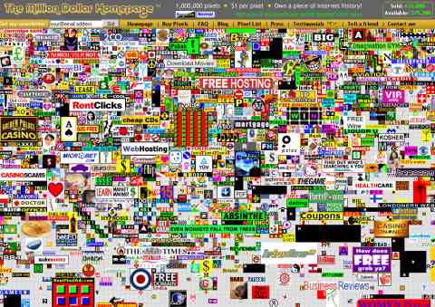 Alex Tew decidió algo sencillo pero que sonaba a ridículo; vender en un espacio web pixeles de una rejilla de 1000X1000 de por 1 dólar. Con el lema de La página del millón de dólares la idea local no sólo cumplió con lo que pretendía, sino que además lo hizo en tiempo récord, ya que su propietario al final obtuvo algo más de 1 millón de dólares en tan sólo cuestión de meses.